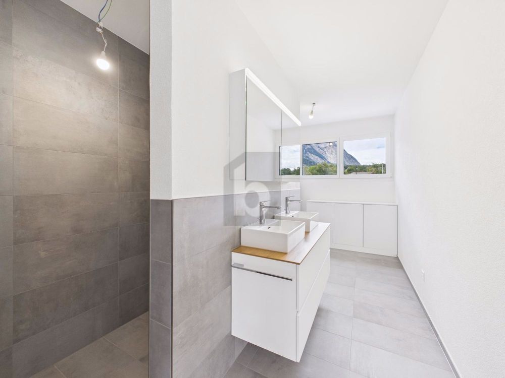 Willkommen in Ihrer stilvollen 3.5-Zimmer-Attika-Wohnung - ein Ort, an dem Architektur und Lebensgefühl harmonisch verschmelzen. Die riesige Dachterrasse eröffnet ein Panorama, das den Atem raubt - ein Platz für Sonnenaufgänge, Sternennächte und Ihre ganz persönliche Oase. Im Inneren erwartet Sie eine offene Küche mit edler Kochinsel, Granitabdeckung und hochwertigen Markengeräten die zum Kochen und Geniessen einlädt. Grosse Schiebefenster lassen Licht in jeden Winkel, während edle Holzböden für stilvollen Komfort sorgen. Die moderne Nasszelle mit Dusche, WC und Doppellavabo bietet Ihnen ein Gefühl von Eleganz. Sogar Golfcarts mit eigener Garage stehen Ihnen zur Verfügung.