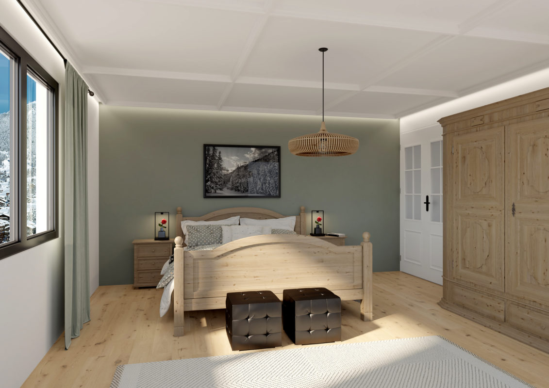 3D-Rendering Chalet Schlafzimmer - Zugerberg